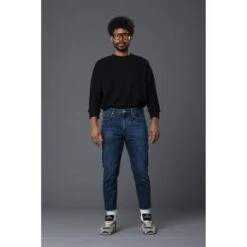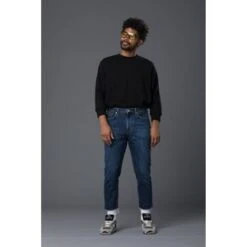 AGOLDE continues to push excellence and ingenuity in the premium denim market with the Cut Off Here in Desolate. Hand crafted in true indigo denim with a rugged, raw-edge hem for a classic look. The jean has a tapered cut, relaxed in the thigh, and narrow along the hem. This is a perfect relaxed fit and the new favorite jean in your collection. Worn with the DEVEAUX Dolman Sweatshirt.