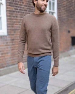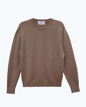 A brown Italian Merino wool sweater, made in America on cutting-edge knitting machines. Pre-shrunk and machine-washable.