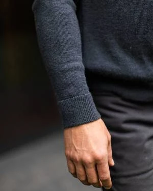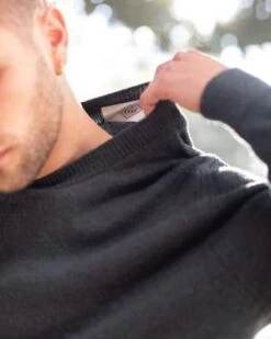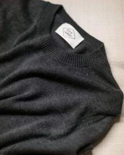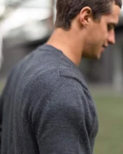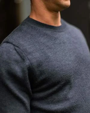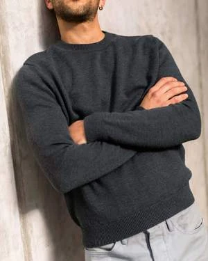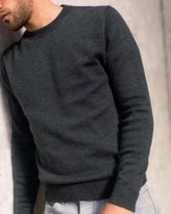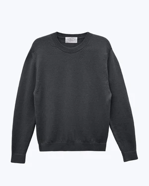 A deep gray Italian Merino wool sweater, made in America on cutting-edge knitting machines. Pre-shrunk and machine-washable.