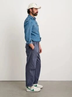 Vintage-washed and garment dyed for a lived-in look with highs + lows of color at seams. We added adjustable tabs at the waist and an interior button closure for a fit that’s more tailored to you. Slight gusset at the crotch for extra comfort. Pro tip: we like these cuffed once or twice.