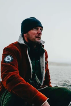 Overshirt in water-resistant stretch cotton corduroy from Cosserat Company, France. Lined with wool fleece from Pontetorto, Italy.