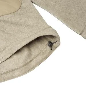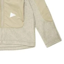 – The And Wander Top Fleece Jacket is constructed from a mix of Pertex Quantum Air and Polartec fleece fabric with Primaloft Silver insulation. The jacket is designed with a high collar and hood which covers the head and neck. There are two zippered front pockets that can be used as hand warmers and one zippered interior pocket. Button cuffs on the sleeves and drawstrings on the waist and hood allow for an adjustable fit. This water-resistant, super versatile fleece jacket is sure to keep you warm, dry and comfortable.
