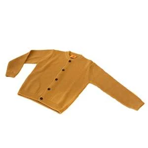 – Buffalo horn buttons, double folded sleeve rib, side pockets with roll edges, fully fashioned