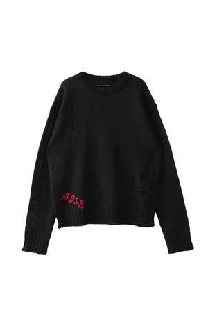 Long sleeves. Boxy fit. Logo embroideries at front. Distressed details throughout.