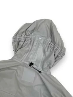 – Bungee-style drawstring at brimmed hood