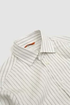 French neck, classic shirt. Pinstripe smooth popeline