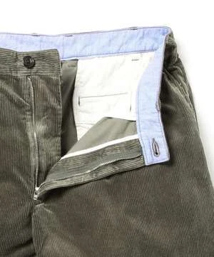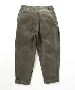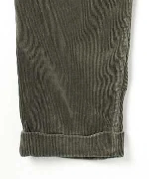 Made of thick ribbed corduroy fabric, the design features slanted American pockets, back pockets with double beaded edges, and a clean tapered silhouette at the hem. A modern arrangement with an eight-quarter length double finish.