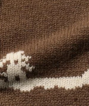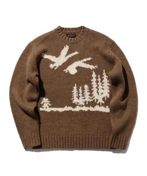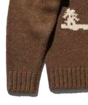 Classic BEAMS PLUS crew knit with an impressive large knitted pattern, with an outdoor theme. The beautiful knitted fabric and intarsia knitting with clear contrast are attractive.