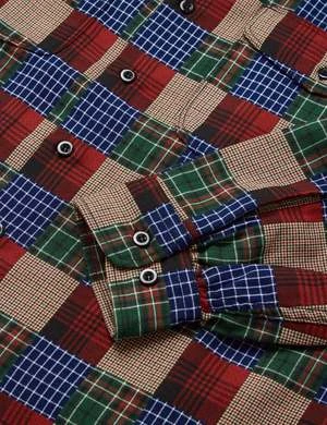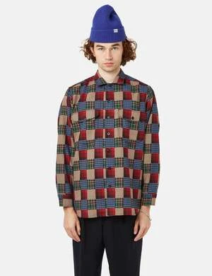 Beams PlusWork Shirt (Dobby Check) – Patchwork Red/Blue
