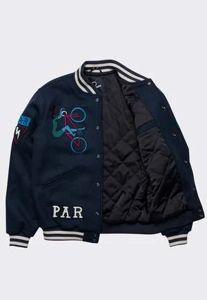 Parra Run Sit & Bike Varsity Jacket – Navy Blue
