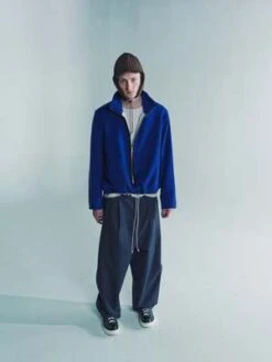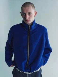 Zip anorak in light wool fleece with stand-up collar. Lined with soft cotton. Two zip pockets in sideseams. Bias tape along the zip. Raw details at the hem and neck line. Adjustable elastic cord at the bottom drawstring fastening. Electric wire on the zip puller.