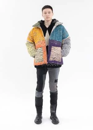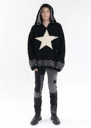 Model is 6 (183 cm), 125 pounds (56 kg), usually wears M in tops. A size 29 in denim and 46 in trousers. Size 10 in shoes.