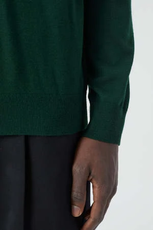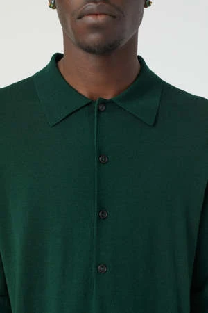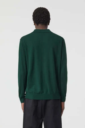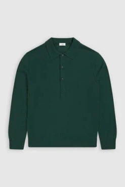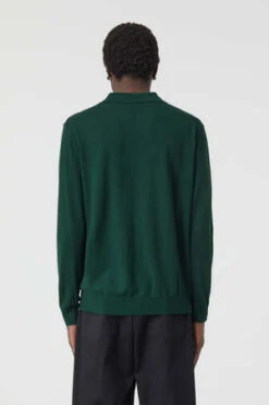 Our sweater comes with a polo collar and has a clean design. Made of soft organic wool with a slightly transparent look. This long-lasting classic has buttons with a horn look, ribbed sleeve cuffs and a ribbed hem band.