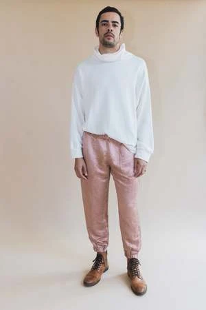 Made of a 50% hemp + 50% silk blend fabric, the megan joggers are a mid-weight staple that can easily be worn year round.