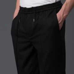 – Elasticated waistband. Pintuck seams at front.