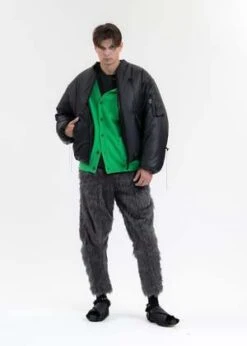 Model is 6’1 (185cm), 159 pounds (72 kg), usually wears M in tops. A size 30 in denim and 46 trousers. Size 10 in shoes.