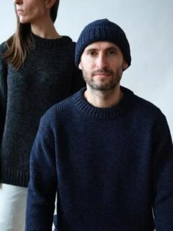 The NICK Sweater (our Co-founders name-sake) is a mens staple sweater and the first in our mens collection. Inspired by the chunkiness and bold finishing of traditional fisherman sweaters we set out to create a refined, polished version – an essential sweater a man would gravitate towards and wear on repeat. We developed a sustainable yarn blend of eco-wool and alpaca to achieve the perfect combination between a compact menswear structure and the softness of hand-feel to be just right for a mens sweater with a simple but bold presence. Men be warned this sweater has him and her appeal! Also available in Graphite Tweed.