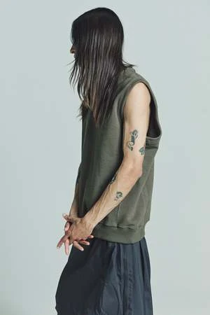 The shape is based on a classic jersey from a catering company in the north of Italy. Fabric is Italian 520 g/mq Gialvatex heavy jersey. Features include; heavy weight, garment died, ribbed arm opening and collar.