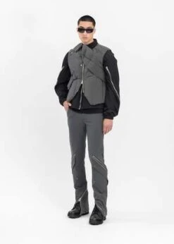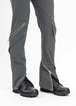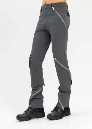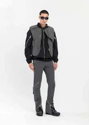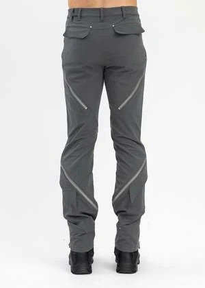 Frazil cargo pants in dark grey, from Heliot Emil. Slim paneled construction with four pocket styling, tonal belt loops along the waist, and wrap-around zippered venting at either cuff. Logo-engraved silver-tone hardware and tonal stitching throughout.