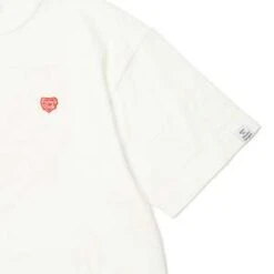 -A Graphic T-shirt with Human Made’s standard rounded body. It has printed heart-shaped logo graphic on back and embroidery heart logo on the front.