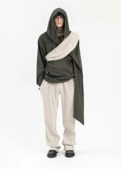 Model is 6 (183 cm), 125 pounds (56 kg), usually wears M in tops. A size 30 in denim and 46 in trousers. Size 10 in shoes.
