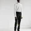 Iron Heart’s original work pants cut, constructed from 11oz cotton whipcord. Often utilised in military wear, the tightly woven cotton twill of whipcord is renowned for its hardwearing properties, offering excellent scratch and wind resistance. Lightweight and durable, these straight cut, medium rise pants feature a four-pocket design, with heavy-duty design elements including reinforced belt loops, a Universal zipper fly and an oversized snap fastening rear pocket.