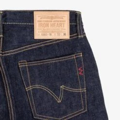 Iron Heart’s high rise relaxed tapered cut jeans in an 18oz indigo selvedge denim, woven in the renowned Shinya mill which is famed for authentically vintage style denims, whilst the jeans are constructed to Iron Heart’s high technical standards, mixing old methods and new techniques is Iron Heart’s “vintage style”.