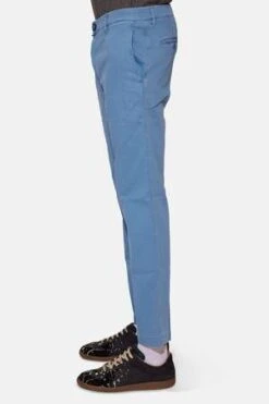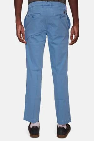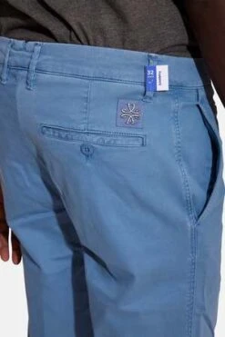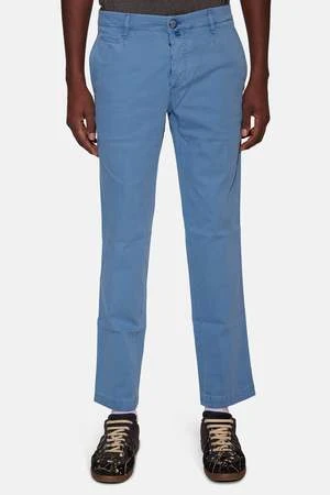 – A Paper Thin Cotton Blend Chino in Marine Blue w/ Small Tonal Blue Jacob Cohen Insignia Patch Above the Back Right Pocket, Side Slant Pockets