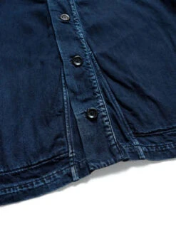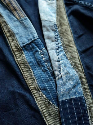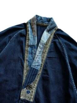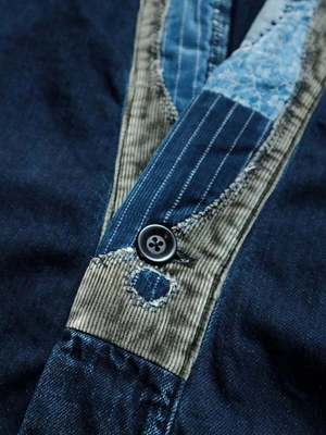 A country remake denim shirt inspired by Noragi, one of Japanese workwear. The half-collar part is a combination of corduroy and a different fabric, and by adding damage, it has an antique atmosphere and a warm design.