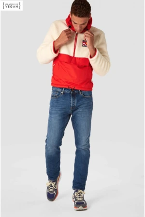 Daniel is a relaxed tapered fit with a low crotch. The top has more room at the thighs for comfort. The legs are tapered, with a bottom slightly bigger than John and Charles. The jean has all of our classic details – a side fish tack, the back pocket waves and 5 pockets. This jean is a vegan option. All the metal used is recycled. This jean also contains recycled cotton materials.