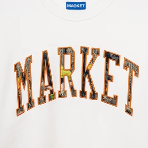 Embroidered outline with a tree camo-appliqued fill