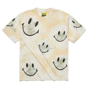 ALL OVER PRINT SMILEY ARTWORK ON TOP OF A SWEET HAND-DYED TIE-DYE