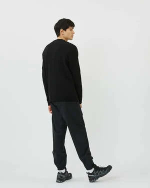 A long-sleeved jumper crafted from a melange wool and nylon blend for a warm and durable quality. It has a regular fit and features rib edges along the neckline, cuffs and at the bottom of the jumper. The model is 185 cm tall and wears a size large.