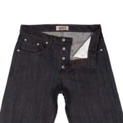 The Stretch Selvedge is one of the most popular core selvedge fabrics in Naked & Famous Denim’s lineup. Woven on vintage shuttle looms in a right hand twill construction, this 12.5oz Japanese selvedge denim combines the comfort of stretch denim with the beauty and fading potential of raw denim. The 2% elastane eliminates the break-in period and gives you a continual level of comfort that you can’t experience in 100% cotton jeans. Other details include contrast stitching, full grain English tan leather patch, red selvedge ID, silver metallic buttons and rivets.