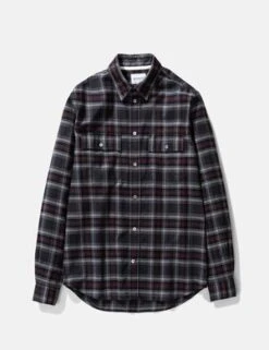 The Norse Projects Villads brushed flannel check shirt in mulberry red from the Norse Projects Autumn/Winter 2019 collection.