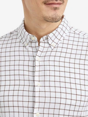 The M. Fulton Micro Check Shirt, our classic cut for casual events. The tailored but relaxed construction brings a timeless shape to a windowpane check design that is sure to bring just the right amount of sophistication to any outfit. Feel relaxed whether it be an office event, or drinks with the posse.
