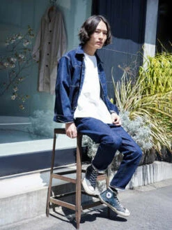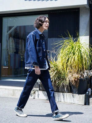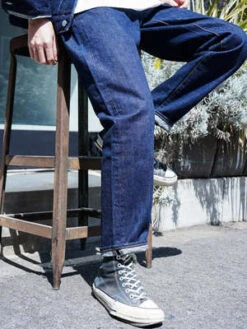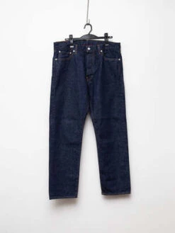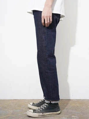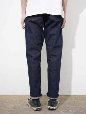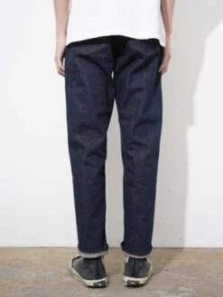 The Ankle Denim Jean from Ordinary Fits is a loose, relaxed fit jean with a beautifully tapered silhouette. Crafted using 14oz selvedge denim, the trousers are made using a mix of uneven threads to create a slightly irregular, rough texture. The jeans have five pockets and are finished with a button fly.