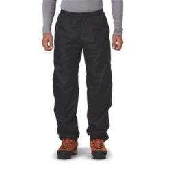 – Welted, DWR-treated two-way side zips extend from cuff to thigh for easy pull-on over boots and double as vents; partially elasticized cuffs adjust with a snap-tab closure