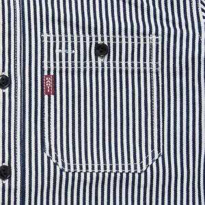 Hickory joins the popular classic work shirt. The 14oz and slightly thicker fabric is left as it is, and it is finished with a clean hickory stripe.