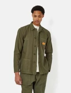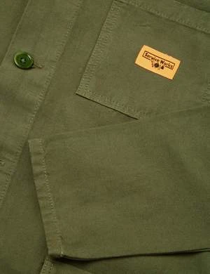 The Coverall Jacket from Service Works is constructed from a 11oz cotton, and cut in a regular fit.