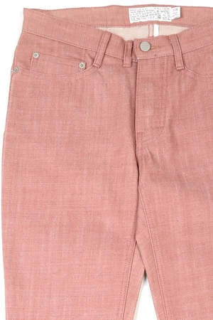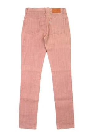 Five-pocket jean in a slim fit with button fly closure. Raw red denim will fade uniquely over time with every wear. Tonal stitch-work with silver hardware.