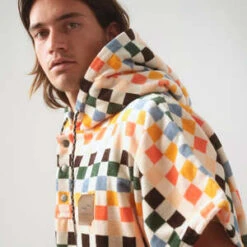 Functional – Hidden internal access opening so you can change privately in public. Kangaroo pocket built for storage. Double layer woven hood. Snap front placket with drawcords.