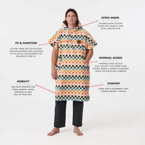 Warm – Our most plush changing poncho. Made with winter-weight cotton terry.