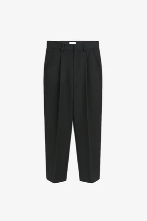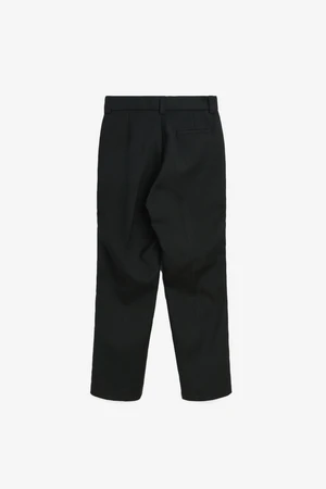 Ula is a straight cut pant, with 3 cm front pleats, press folds, lined at front to knee. Waistband with belt loops and hook and eye closure. Slanted pockets at front and welt pocket at back. Made in a heavy wool blend twill fabric.