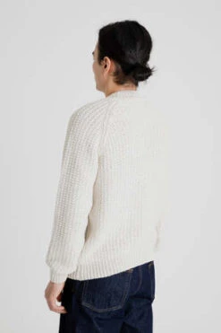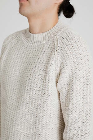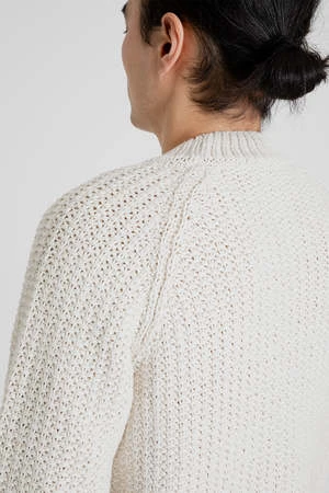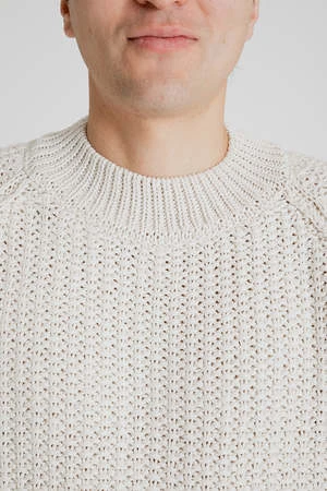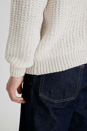 True to the label’s ethos, Sunflower’s Tape Sweater is an understated piece that’s brimming with relaxed style and designed to stand the test of time. This knitted crew-neck sweater has a fairly loose structure with an open garter stitch, and is knitted with cotton blend tape yarn to give it a light feel, which makes it perfect for slipping on over a tee when warm days transition to cool nights. The piece has a slightly oversized fit, with ribbing around the cuffs, collar, and hem.