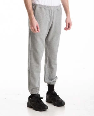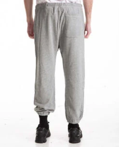 The Men’s Stadium Sweatpant in varsity grey by The Great. It features an elasticated waist with a hidden drawstring, elastic leg cuffs, pockets on the side seam, and a patch pocket in the back.
