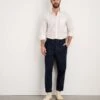 Leg tapers through to hem.