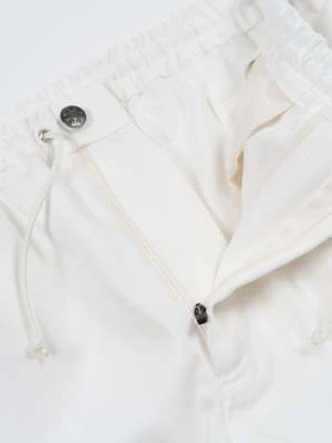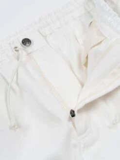 Venturon’s Bussang 4th Denim Pants in White are Spring/Summer trousers constructed from a breathable cotton denim and Tencel blend of fabric. The Bussang Pants have a utility driven silhouette and feature easily accessible curved pockets, an elastic waistband and Paracord drawstring. The pants are finished with autolock zippers and a pintuck hem.