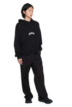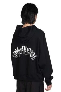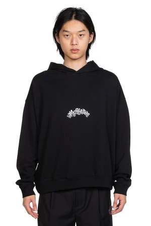 French terry hoodie. Stand collar at hood. Logo graphic printed at front and back. Rib knit hem and cuffs. Dropped shoulders.